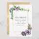 Invitación de boda de suculentas de moda con marco geométrico dorado y tipografía elegante. Ideal para cualquier tema o boda en el jardín. La foto en el reverso es opcional.