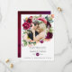 Tarjeta de foto de boda floral boho para guardar la fecha con flores de peonía y anémona, vegetación y plumas en acentos de ciruela borgoña y rosa desmayado personalizable a sus especificaciones.