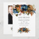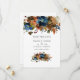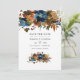 Ahorre la fecha de la boda floral trendy acuarela en acentos de naranja marrón jengibre y azul marino índigo.