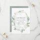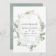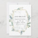Foto de boda de bosque salvaje con eucalipto, herbarium y marco geométrico dorado, y diseño de lavado de acuarela de salvia plateada en el reverso, diseñado para ser personalizado rápida y fácilmente según los detalles de su evento.
