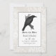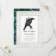 Guardar la fecha de boda gótica con un cuervo y un fondo de encaje con un patrón de damasco de cráneo invertido.