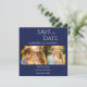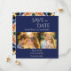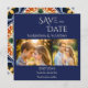 Azulejo azul Portugués Talavera tejas vintage boda mexicano collage de fotos guardar la plantilla de invitaciones de fecha, boda de patrón de azulejos folclóricos mediterráneos dos foto guardar la fecha invitación plantilla editable descarga digital instantánea boda estilo Hacienda guardar la fecha invitaciones
