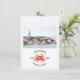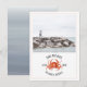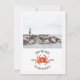 Una boda rústica náutica ahorra la fecha de la boda con una ilustración de un cangrejo rojo con foto personalizada en la parte delantera. La parte trasera tiene un diseño inspirado en acuarela de color chambray.