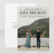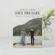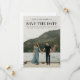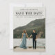 Una tarjeta de anuncio de fecha de boda moderna con una foto vertical de sangrado total y texto editable limpio y chic en la parte frontal. La parte trasera tiene texto de sitio web de boda removible para que los invitados reciban más información. Haga clic en el botón de edición para personalizar este diseño.
