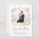 La "Foto de conchas de playa Blush Pink Elegante Boda Save the Date" es una tarjeta de anuncio de boda personalizable y bellamente diseñada que captura la esencia de una boda en la playa. La tarjeta presenta una impresionante fotografía de la pareja rodeada de un marco de conchas, con suaves toques de color rosa que añaden un toque de elegancia y sofisticación.
