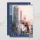 Mr. and Mrs. Navy Blue and White Script Photo Save the Date Card. Con estilo impresiona a sus huéspedes con esta elegante carta, sencilla, azul oscuro, con un boda fotográfico de última generación, con un guión blanco moderno sobre un fondo azul marino bokhe, mostrando con estilo la fecha del boda horizontalmente a lo largo de la izquierda, junto con una foto personalizada de la pareja casada, con un elemento de línea plateada simple en el lado derecho. Luego, un mínimo de azul oscuro de la tarjeta, con simplemente los nombres y el lugar de la pareja casada para estar en un elegante tipo de letra blanca. Esta tarjeta de boda minimalista le da un toque elegante y moderno a su boda azul real. Esta moderna tarjeta azul marino, con fotos de boda, salva la fecha, dará un agradable final a cualquier boda simple y minimalista rodeado de flores azules oscuras, neutras y ramos de flores, a juego con la decoración boda azul o neutro de medianoche. Una adición perfecta a cualquier celebración simple y mínima de los bodas. Colectivo Dominical © por Rachel Hannah Gee