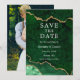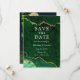 Tarjeta de Aviso de Boda de Geoda de Ágata de Mármol Verde Esmeralda y Oro con Acuarela Moderna Elegante - Parte Trasera de la Foto