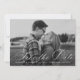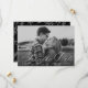 Anuncie sus próximos nupcias con estilo con nuestro script de caligrafía blanca guardar las tarjetas de fecha. El elegante guardar las fechas muestra su foto de compromiso horizontal con "Save the Date" en un guión de caligrafía blanca. Personalice la parte delantera de la foto y guarde la fecha agregando sus nombres, fecha de boda y ciudad/estado. La tarjeta se invierte para mostrar un patrón follaje blanco con un fondo negro o color de su elección.