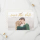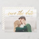 Este elegante guardar las características de fecha de la escritura shimmering en Relieve metalizado falso con un respaldo a rayas. Suba su propia foto y personalizar la información para incluir los detalles de su boda.