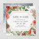 Esta hermosa y moderna boda navideña, salvo la tarjeta de invitación de fecha, cuenta con elegantes flores de color rojo acuático con bayas, piñones y vegetación. La parte posterior de la tarjeta incluye una foto para personalizar. Buscar elementos coincidentes en la colección Navidades botánicos de invierno rojo de vacaciones.