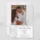 Este anuncio de Save the Date de Foto de mármol simple blanca viene con un diseño de texto simple, en un diseño moderno y simple contra un fondo de mármol esperando su foto y detalles de la boda para personalizar. Colores adicionales disponibles con este diseño.