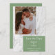 Este anuncio de guardar la fecha de foto de mármol simple verde musgo viene con un diseño de texto simple, en un diseño moderno y simple contra un fondo de mármol esperando su foto y detalles de la boda para personalizar. Colores adicionales disponibles con este diseño.