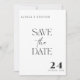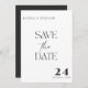 Tarjeta plana de fecha de salvación de foto en blanco y negro simple y elegante. Foto de pareja con estilo para guardar la fecha con fuente de escritura decorativa y fecha en negrita. El contraste negro en el reverso actualiza el diseño moderno de Save the Date. También disponible en descarga digital instantánea para su conveniencia. Puede encontrar más opciones de tarjeta plana de fecha de salvación similares a esta en la Colección de Save the Date Modern Minimalista en Blanco y Negro en la tienda de The Gathering Designs.