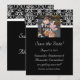 Anuncio de compromiso de guardar elegante foto para la próxima boda. Formal, rico y elegante fondo negro con sello inicial de monograma en blanco y negro, invitación de boda y conjunto a juego. Personalice en línea con los detalles de su boda.