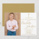Invitación de Primera Comunión con elegante firma dorada que incluye una foto especial y el nombre en letra dorada. Personalice con la información de su evento especial en esta tarjeta de estilo neutro con letra dorada. Diseñado por Thisisnotme©