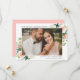 Anuncie su próximo boda con nuestras elegantes y elegantes tarjetas de fotos de fecha. La tarjeta para guardar la foto de fecha incluye tu foto favorita de compromiso enmarcada por flores de color de agua blancas y rubor y hojas verdes exuberantes. Personalice agregando sus nombres, fecha de boda, ciudad y estado boda y detalles de la invitación. Diseñado para coordinar con nuestra colección de bodas Rubor Florals.
