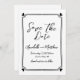 Tarjeta de "Save the Date" de boda en negro y blanco con dibujos simples y caprichosos. Esta tarjeta de "Save the Date" en negro y blanco inspirada en Europa presenta un diseño limpio y minimalista perfecto para parejas que buscan elegancia atemporal. Un sutil marco dibujado a mano con encantadores corazones negros en cada esquina rodea suavemente los detalles de su boda, presentados en una mezcla de fuentes de escritura y manuscritas para un aspecto que se siente elegante y personal.
