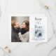 Anuncie su día especial con un estilo exquisito con nuestra Dusty Blue y la boda floral de la marina Salven la fecha. Diseñados para captar la esencia del romance y la elegancia, estos ahorran las fechas sirven como un bello preludio a su próxima celebración. Con un impresionante motivo floral azul polvoriento y marino, cada carta es una obra de arte que resume perfectamente el amor y la alegría de su unión inminente. Diseñados con los mejores materiales y atención a los detalles, nuestra boda, salvo que las fechas son más que simples cartas —son muestras de amor que serán valoradas en los años venideros. La impresión fotográfica de alta calidad garantiza que la imagen elegida brille con claridad y brillo, mientras que el diseño elegante le aporta un toque de sofisticación a su invitación. Cada vez que sus invitados vean su cita, recordarán el amor y la emoción que rodea su día especial. Guarde las fechas de manera exclusiva con opciones de personalizable que le permitan añadir un toque personal a cada detalle. Desde la selección de la foto perfecta hasta la elección de fuentes y colores, nuestra Dusty Blue y la Marina Floral Wedding Save the Dates se pueden diseñar para que se adapten a su tema y estilo boda. Ya sea que esté planeando una aventura rústica al aire libre o una glamurosa velada de salón de baile, estas fechas ahorran el tono perfecto para su próxima celebración. Anuncie su amor con nuestra Dusty Blue and Navy Floral Wedding Save the Date. Con un diseño atemporal y opciones de personalizable, preserva sus preciados momentos con estilo. ¡Pide ya el tuyo!