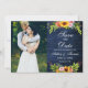 Madera Azul Rústica, Floral de girasol acuarela con Rosas, Peonies y Verdor, tarjeta de Invitación Save the Date Engagement