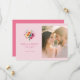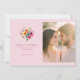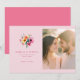 Esta invitación de guardar la fecha de la boda presenta un encantador diseño dividido con una vibrante ilustración floral a la izquierda y un marcador de posición para foto a la derecha. El diseño utiliza una suave paleta de colores pastel en rosa, melocotón y crema, creando una atmósfera elegante y romántica. El caprichoso ramo incluye flores surtidas en tonos de naranja, amarillo, púrpura y verde, agregando textura y profundidad a la ilustración digital estilizada. El texto personalizable se presenta en fuentes serif en negrita, mejorando el tono alegre e invitador perfecto para celebrar el amor y el compromiso.