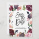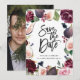 Tarjeta de aviso de salvado con foto floral rosa, borgoña y de higo. Ilustración hermosa de acuarela y escritura a mano de letra moderna. Parte de una colección.