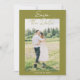 Esta moderna plantilla de Foto de Aviso de Boda para una fiesta de jardín de color verde oliva es ideal para ti. Si estás buscando una plantilla de Aviso de Boda elegante, bonita y fácil de personalizar. Una invitación de Aviso de Boda muy elegante, simple y chic, con una tipografía manuscrita en negrita y caprichosa sobre un fondo verde liso y un marco floral blanco dibujado a mano. Y una foto personalizable en el reverso. Obtén esta elegante tarjeta de Aviso de Boda y haz que tus invitaciones sean verdaderamente atractivas.