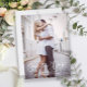 Boda elegante, moderna y escrita a mano Guardar la invitación de fotos de fecha con un guión de broche, sus nombres, fecha de boda y ubicación.