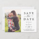 Esta foto minimalista que guarda la tarjeta de fecha es perfecta para un simple boda. El moderno diseño romántico presenta una tipografía clásica en blanco y negro, acompañada de una caligrafía rústica y elegante con un estilo de letra a mano vintage. Personalizable de cualquier color. Mantenga el diseño simple y elegante, tal como está, o lo personaliza añadiendo sus propios gráficos y obras de arte.