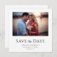 Boda de destino simple Ahorra la tarjeta de anuncio de Date con palmeras tropicales y diseño fotográfico moderno. Con la tipografía de personalizable, puede agregar sus nombres e información de bodas. También añades tu propia foto para añadir un toque de personalización. Ideal para planear tu día especial.