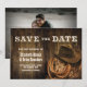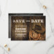 Notifique a sus amigos y seres queridos de su próximo boda con esta rústica tarjeta de boda occidental de madera donde se guarda la cita con una foto de la pareja feliz en el reverso.