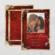 Envía esta hermosa tarjeta de “Guarda la fecha” de boda a todos tus familiares y amigos para invitarlos elegantemente a tu ocasión especial. El fondo rústico escarlata es una mirada muy rica. Recortado en brillo dorado falso para establecer el tono para una elegancia romántica y clásica. Las salpicaduras de oro terminan esta bonita nota de “Guarda la fecha” de boda. Hermosa para cualquier estación.