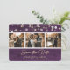 Foto personalizada de un boda púrpura salvando las tarjetas de cita. Personalice fácilmente esta foto morada y guarde la fecha con sus imágenes y detalles del boda incluyendo un sitio web boda.