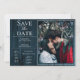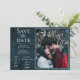 Anuncie su día de boda con esta foto rústica y simple salve el anuncio de fecha. El diseño Save the Date cuenta con un fondo rústico de madera y una fotografía de la pareja feliz. Añadir una foto y detalles del boda al personalizar.