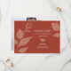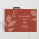 Este sencillo pero elegante salva la fecha con hojas botánicas modernas en terracota. Utilice los campos de plantilla para actualizar los detalles en blanco sobre un fondo de naranja quemado. Cambie el color de las hojas y el fondo para ajustar su tema boda. La tarjeta se invierte para incluir la foto de tu pareja. Para ver el conjunto completo de artículos de papelería boda, visite www.zazzle.com/dotellabelle
