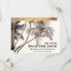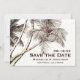 Anuncie a su boda en un estilo tropical intemporal con la "Boda de destino de palmeras tropicales salva la fecha". Este diseño, con obras de arte de palmeras de inspiración vintage y espacio para tu foto favorita en la parte trasera, combina con gusto el encanto rústico con el romanticismo de una celebración costera.