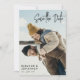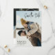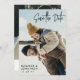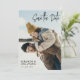 Doble cara guardar la tarjeta de fecha con un guión moderno de firma en negro. Añade tus nombres y fecha de boda en letras modernas y limpias. En la parte posterior, añada más detalles y otra foto.