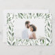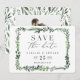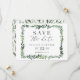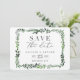 tarjeta de guardar la fecha de fotografía de acuarela frondosa. Con hermosas hojas de acuarela y tipografía moderna y audaz, esta invitación para guardar la fecha está en tendencia y es perfecta para cualquier temporada. Parte de un conjunto de bodas