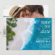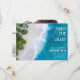 Comuniquen su próximo enlace junto al mar con nuestra Fotografía de Boda de Destino en la Playa para guardar la fecha. Ideal para una romántica celebración a orillas del mar, esta tarjeta luce un diseño de playa deslumbrante y texto elegante en la parte de delante, que captura la esencia de su boda de destino. La parte de atrás muestra una foto preciada de la pareja, lo que añade un toque personal que dejará una impresión duradera en sus invitados.