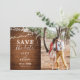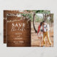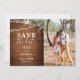 Boho rústico de boda salva la fecha con luces de cadena y vegetación.