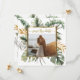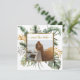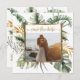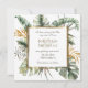 La fotografía Save the Date muestra un elegante diseño de palmeras tropicales acuarelas con un marco dorado, grandes hojas de monstera y ramas elegantes de eucaliptos en tonos verdes y dorados. La presentación inspiradora de atrás es tomada de la canción Biblia Verse de Salomón 3:4, "He encontrado al que ama mi alma" _