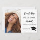 Una foto Guardar la tarjeta de fecha para una graduación. Al frente: Añade tu propia foto vertical del graduado. Fondo blanco de moda, texto negro. Plantillas para un nombre y una fecha. El nombre y el texto: Guardar la fecha se escriben con un guión de estilo con letras a mano moderno. Con una gorra, con una tapadera. Atrás: detalles del fiesta.