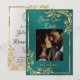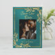 Esta romántica tarjeta Save the Date incluye un marcador de posición para una foto en un romántico fondo verde azulado en el frente con un elegante marco dorado. En la parte trasera hay espacio para información adicional y monograma cardíaco para las iniciales de la pareja. Diseñado para coordinar con la colección de Bodas "Doves, Heart & Gold Leaves". Para cambiar detalles, haga clic en "Personalizar". Para mover el texto o cambiar el tamaño del texto, el tipo de letra o el color, haga clic en "Haga clic en el personalizar"