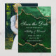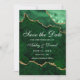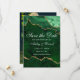 Tarjeta de Anuncio de Boda de Geoda de Ágata de Mármol Verde Esmeralda y Dorado de Acuarela Moderna y Elegante - Parte Trasera de la Foto