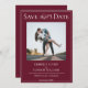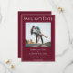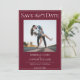 fotofoto de parejapancarta de cintaguióntipografíanovia y novioguarda la fechatema de boda modernaeleganterojo vino