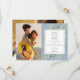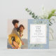 Con delicadas hojas de vegetación de acuarela sobre un fondo azul polvoriento, esta elegante tarjeta de anuncio de boda botánica para guardar la fecha se puede personalizar con tus fotos especiales y los detalles de la fecha de tu boda. Diseñado por Thisisnotme©