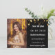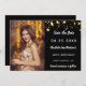 Una foto Guardar la fecha para un cumpleaños 40 (o cualquier edad) Al frente: Añadir una foto vertical. Color de fondo negro, decorado con falsas estrellas doradas. Personalice y agregue un nombre y detalles.