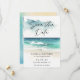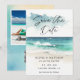 Fotos de la playa del océano con acuarela moderna para salvar la fecha - Un hermoso Save the Date con acuarela que presenta un océano turquesa y una playa de arena blanca. La parte trasera del Save the Date presenta una foto de la feliz pareja y un código QR que conduce a su sitio web de boda.