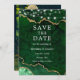 Tarjeta de Anuncio de Boda de Geoda de Ágata de Mármol Verde Esmeralda y Dorado con Luces de Cuerdas - Foto Detrás - Acuarela Moderna y Elegante