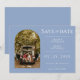 Anuncia tu boda con este anuncio de guardar la fecha de la foto de arco simple. El diseño de guardar la fecha presenta una colocación de foto de estilo de arco para la feliz pareja con un diseño de texto elegante y moderno. Agrega fotos y detalles de la boda para personalizar.