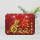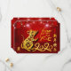 Linternas chinas con fuegos artificiales como fondo con papel dorado cortado de una rata linda + gran dorado 2020, Año dorado de la Rata, saludando "Feliz Año Nuevo" en un ideograma chino y de rata dorada. Diseño en tarjeta plana fiesta horizontal con fondo rojo oscuro + el mismo fondo en la parte posterior con textos para Fiesta chino de Año Nuevo a personalizar. Puede cambiar fácilmente el texto (fuente, color, tamaño y posición) haciendo clic en el botón personalizar. Tarjeta postal, tarjeta de felicitación y más... Perfecto para un alegre Año Nuevo Chino de la Rata 2020.